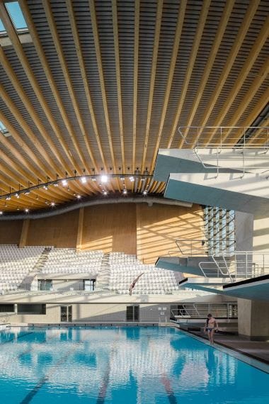 Wood will also get a few weeks in the media spotlight during the upcoming Paris Olympics. One of the only permanent structures built for the event is the Aquatics Centre which has been constructed predominantly with wood.